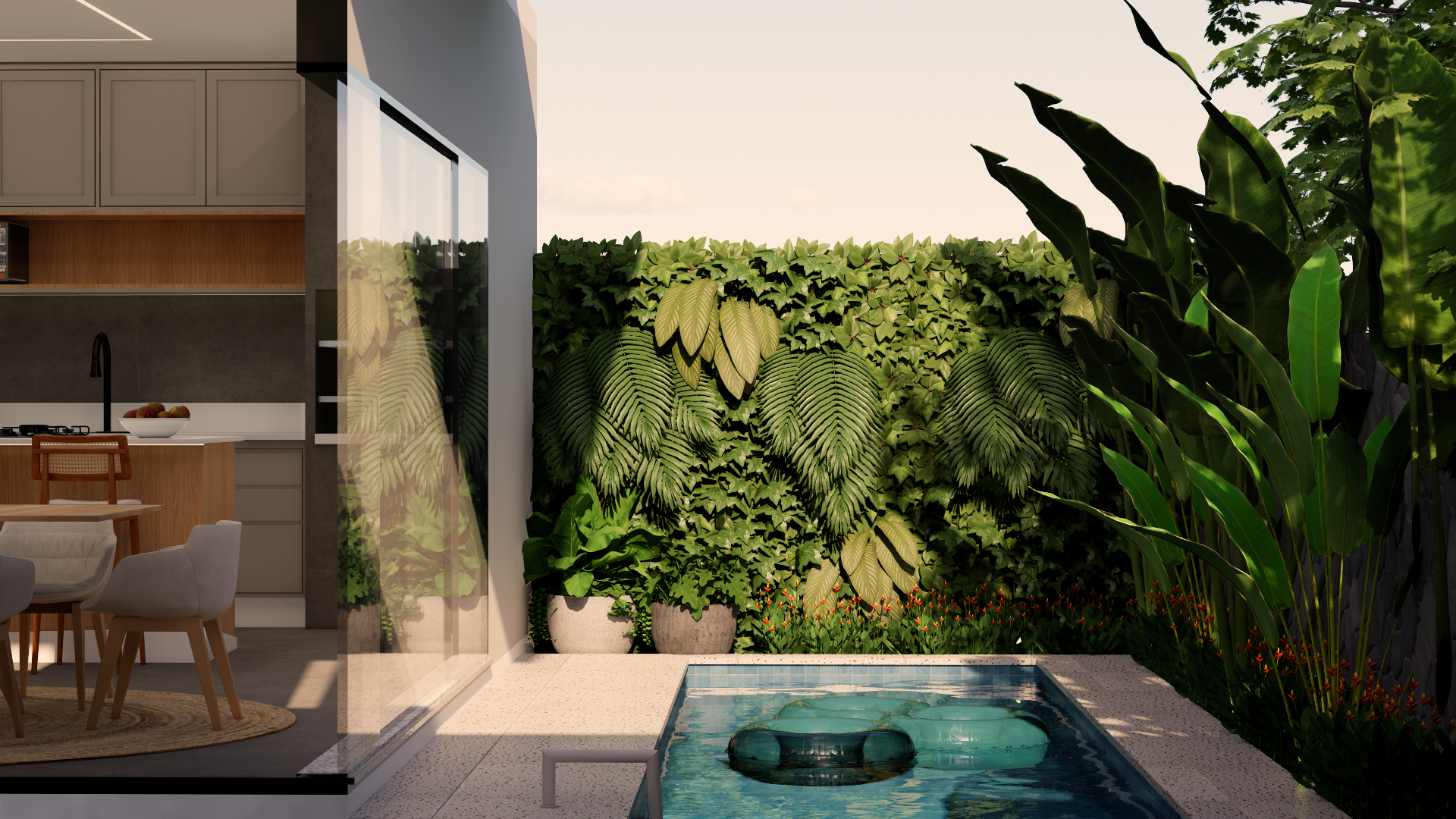 A área externa com piscina é o cenário perfeito para relaxar e aproveitar bons momentos. Uma escolha excelente para quem busca praticidade sem abrir mão do conforto.