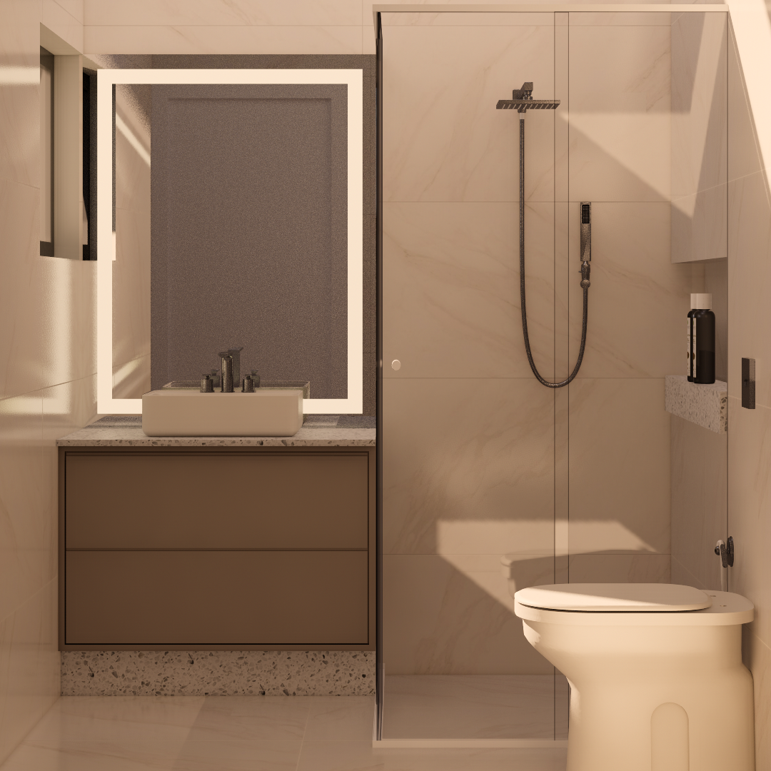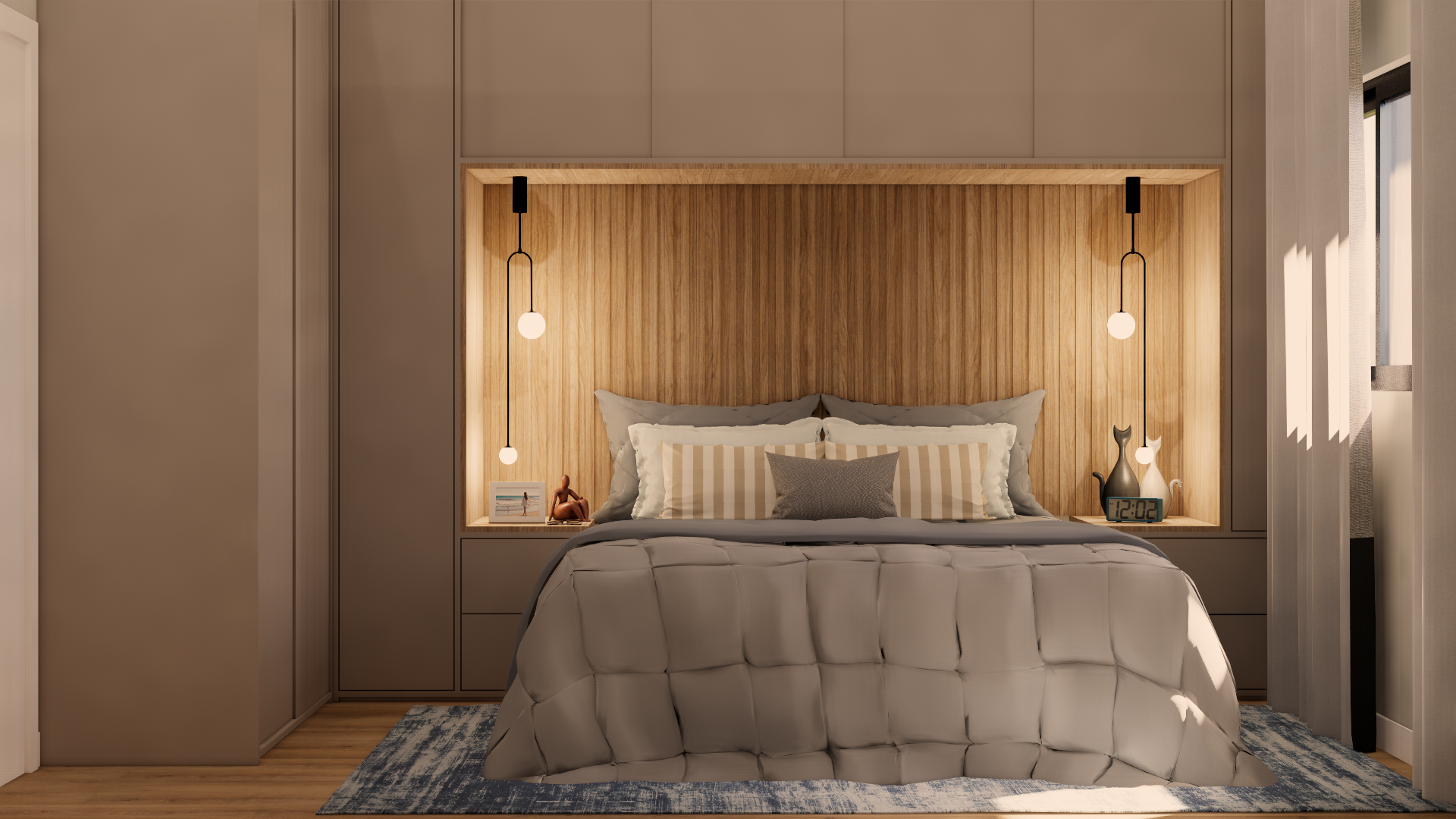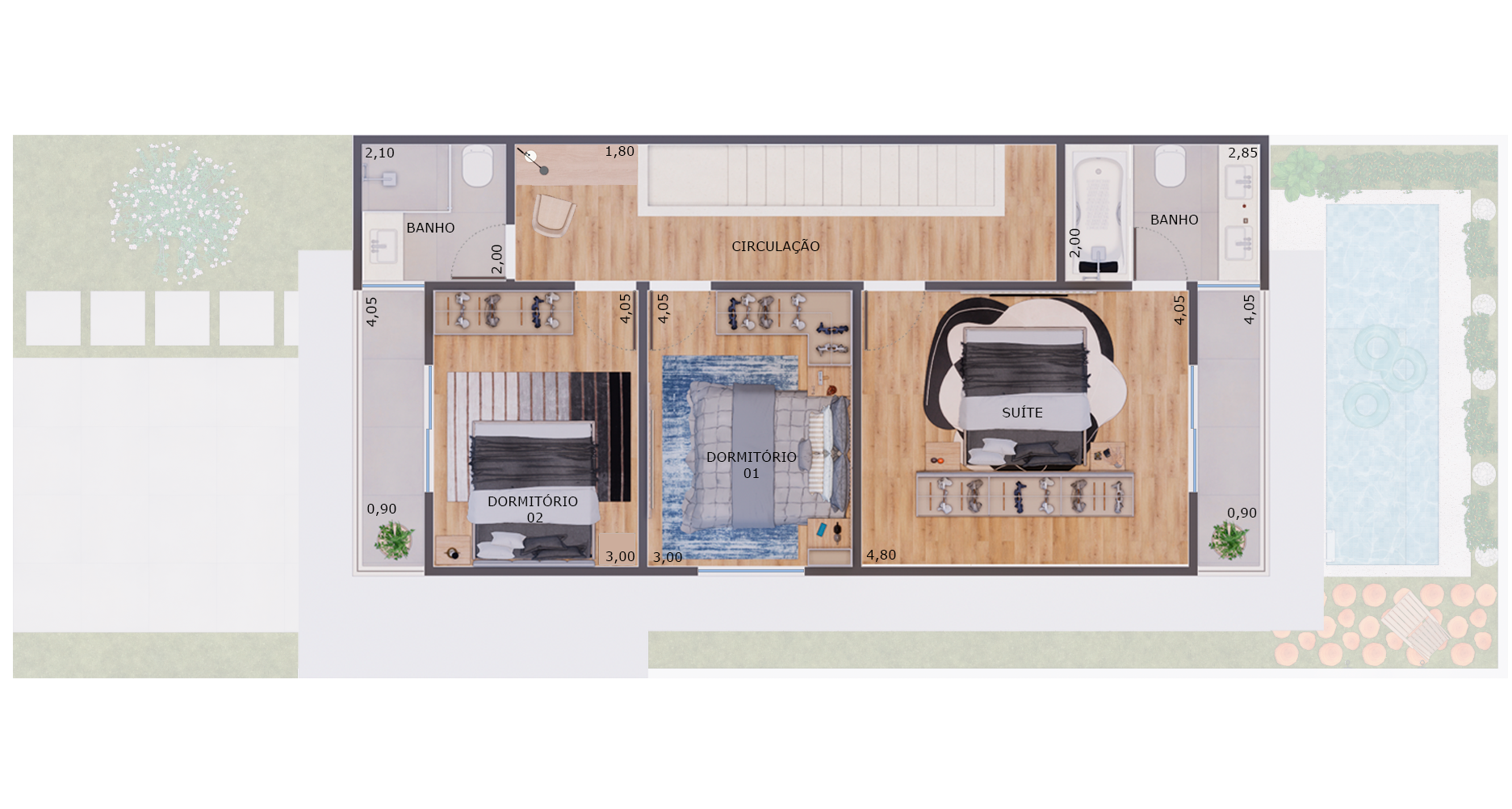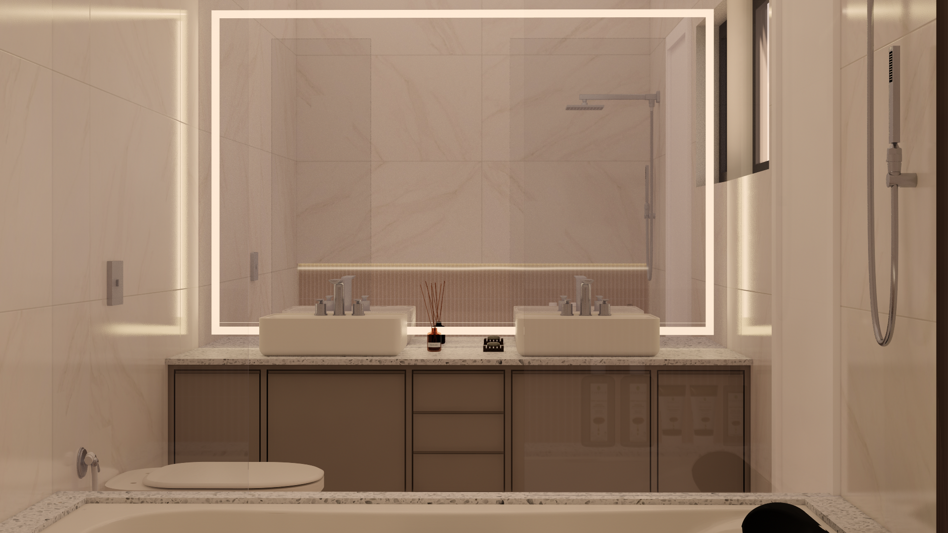 Quartos amplos, suíte master com closet, bancada dupla e banheira.