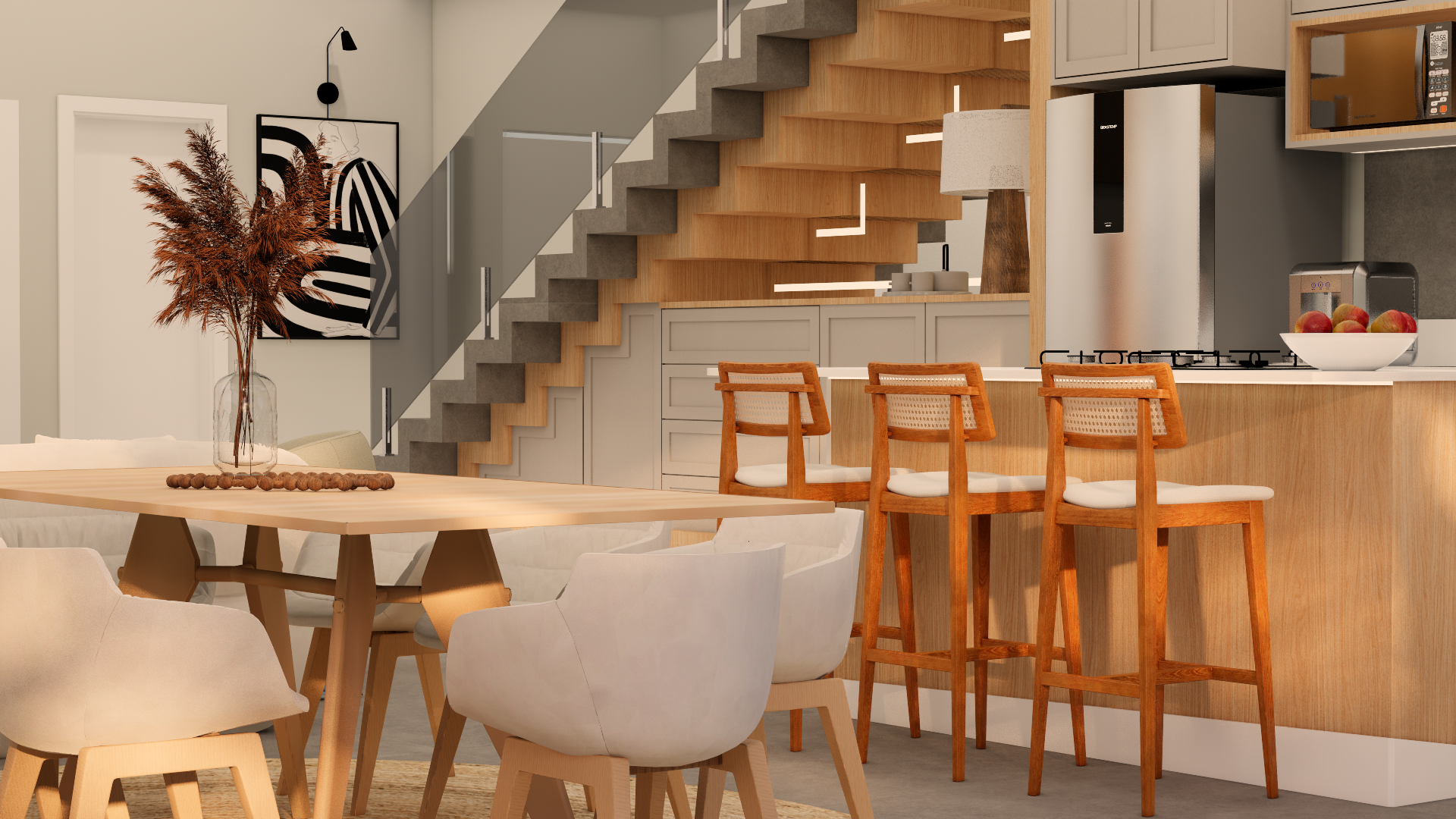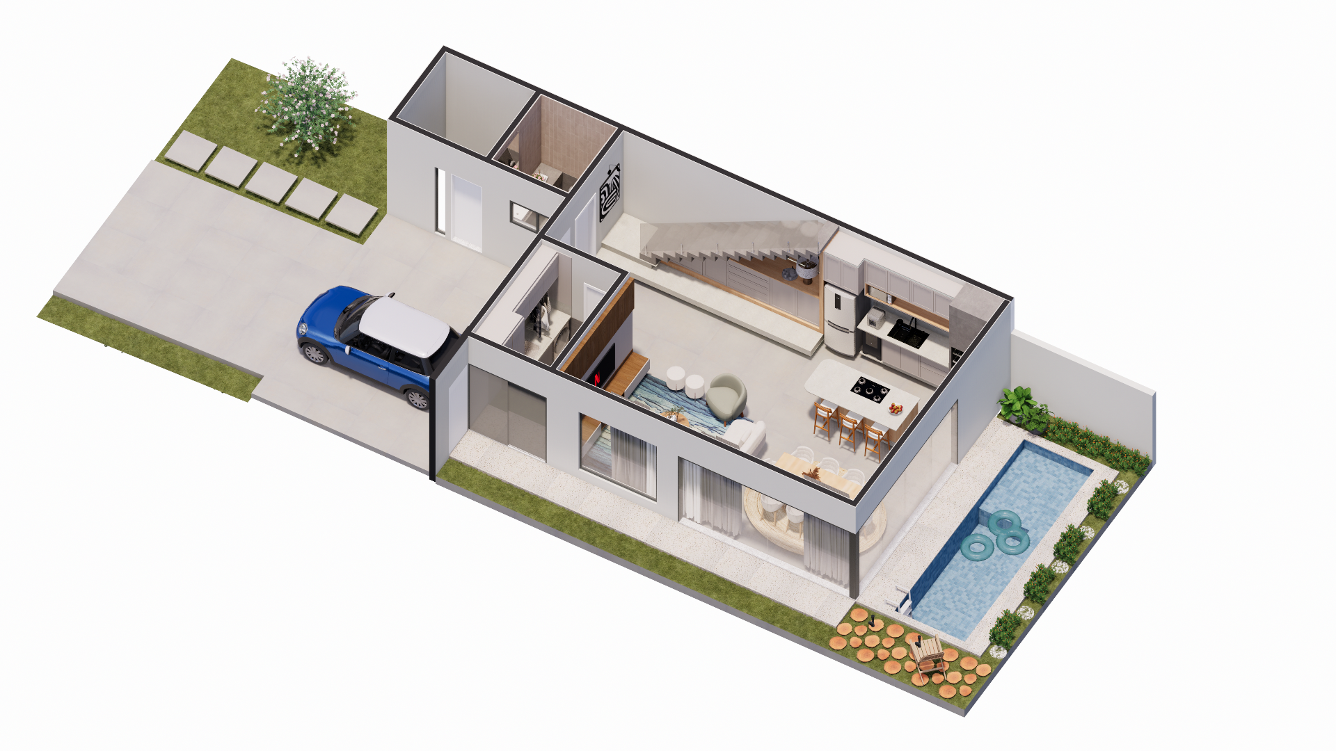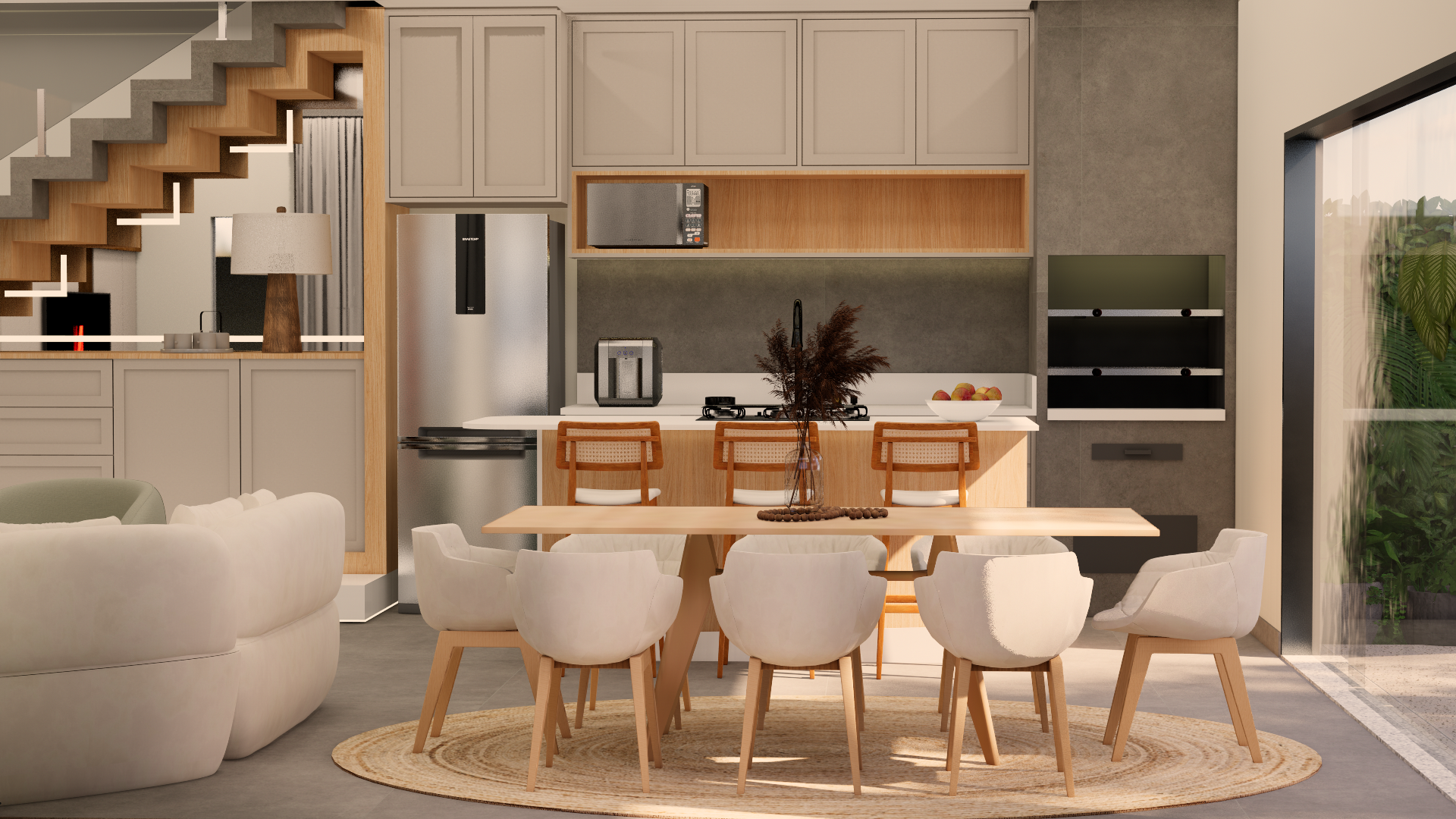 Com um design moderno e bem pensado, a Casa Orquídea oferece sala de estar, jantar e cozinha integradas, criando um espaço amplo e convidativo.