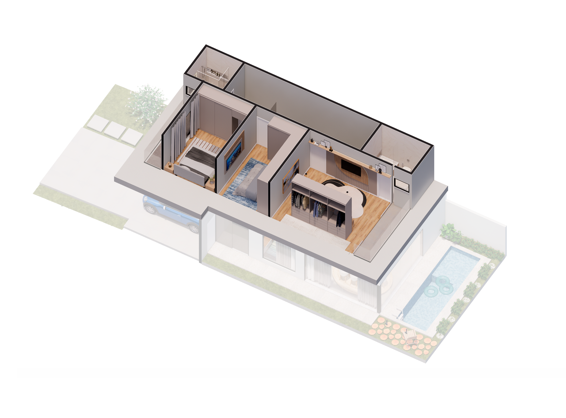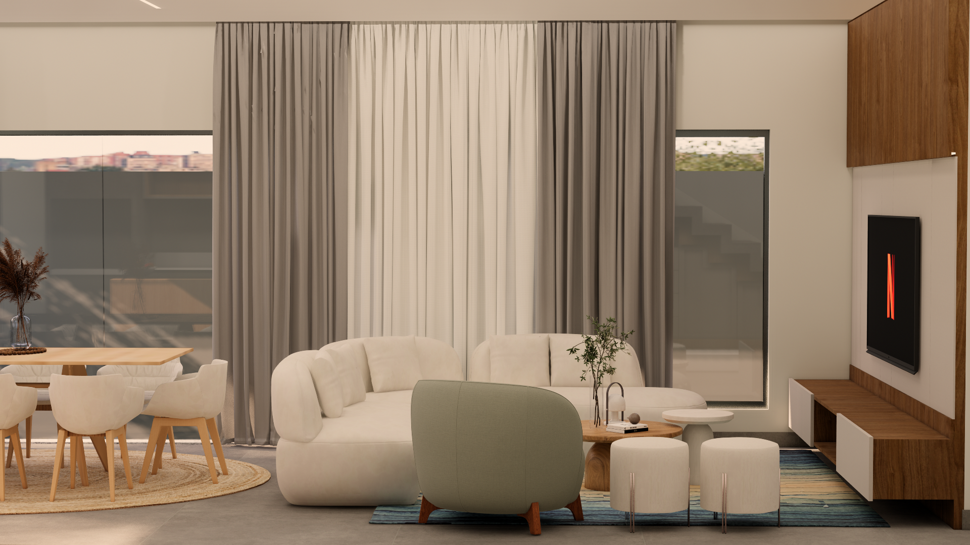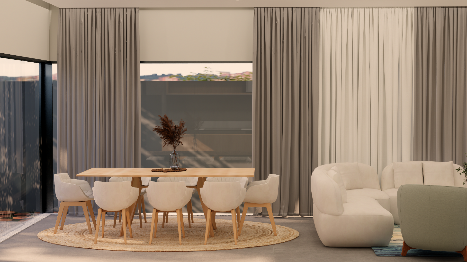 Com um design moderno e bem pensado, a Casa Orquídea oferece sala de estar, jantar e cozinha integradas, criando um espaço amplo e convidativo.